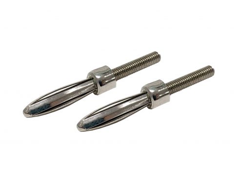 電源装置や電流計、電圧計などに使われるバナナプラグ用の端子に本品を挿すことで、ミノムシクリップで接続しやすくなる端子です。