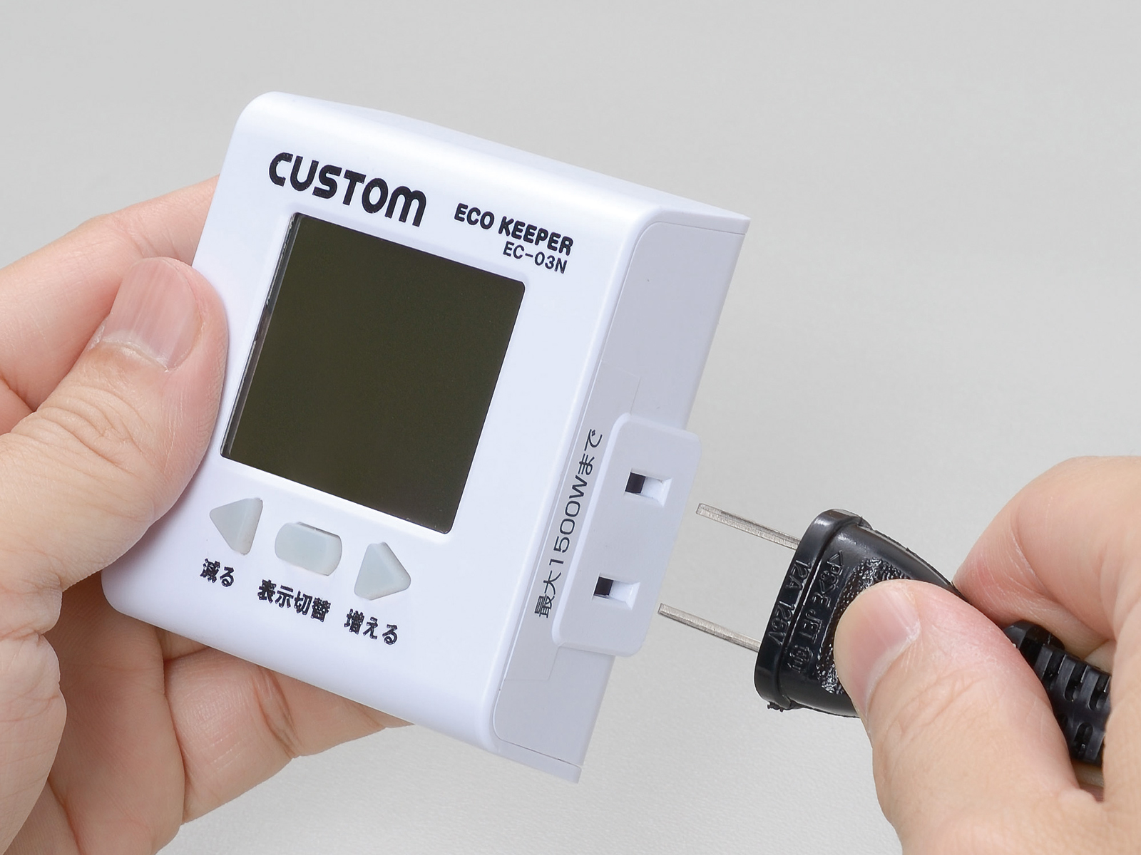 壁コンセントと電気製品の間に接続するだけで、電気製品の電力測定ができます。電気製品の消費電力が瞬時にわかります。