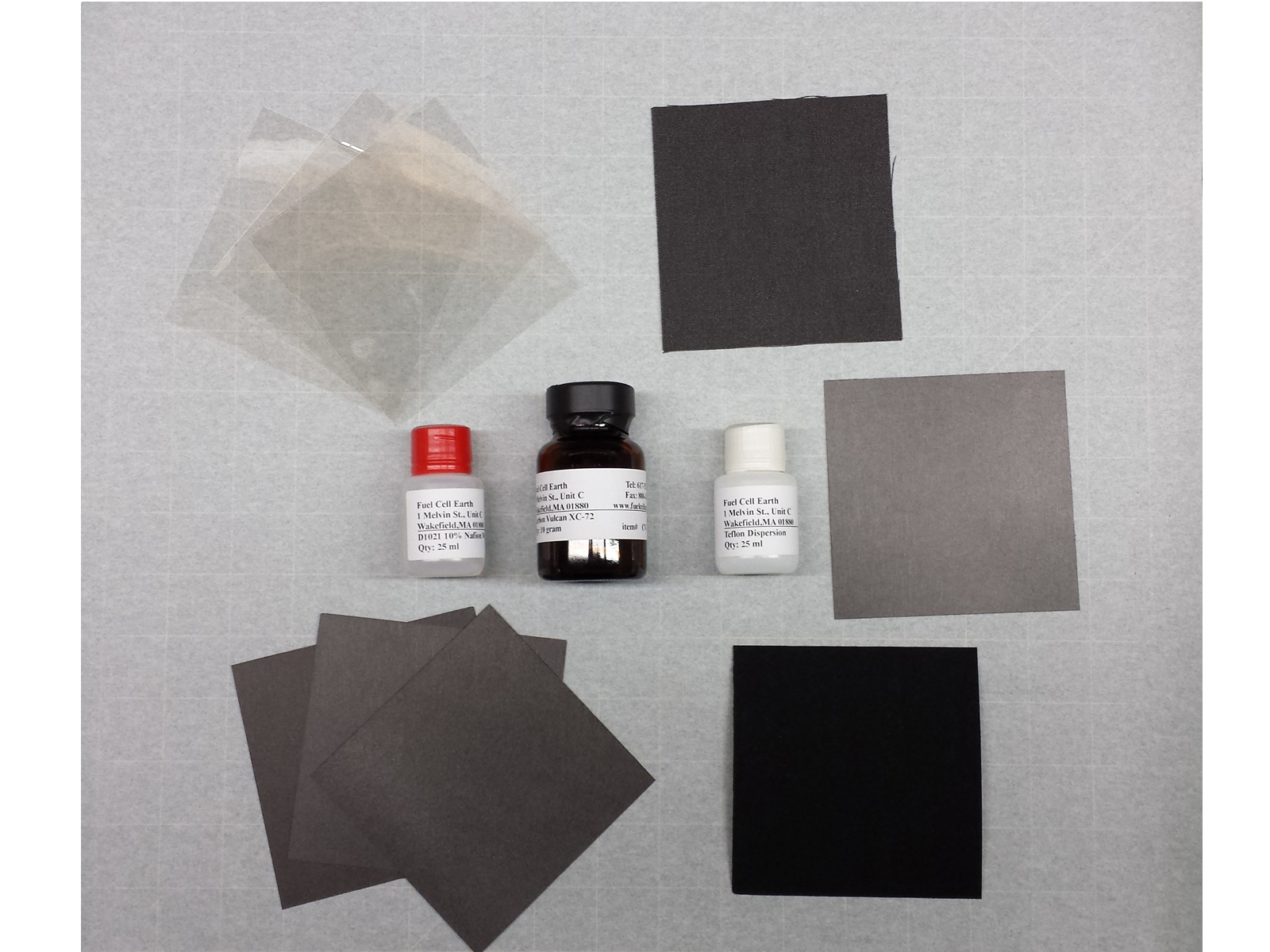 [セット内容]ナフィオン膜 3枚ナフィオン溶液 25mLテフロン溶液 25mLカーボンパウダー 10gカーボンクロスカーボンペーパー 4種マイクロポーラス層