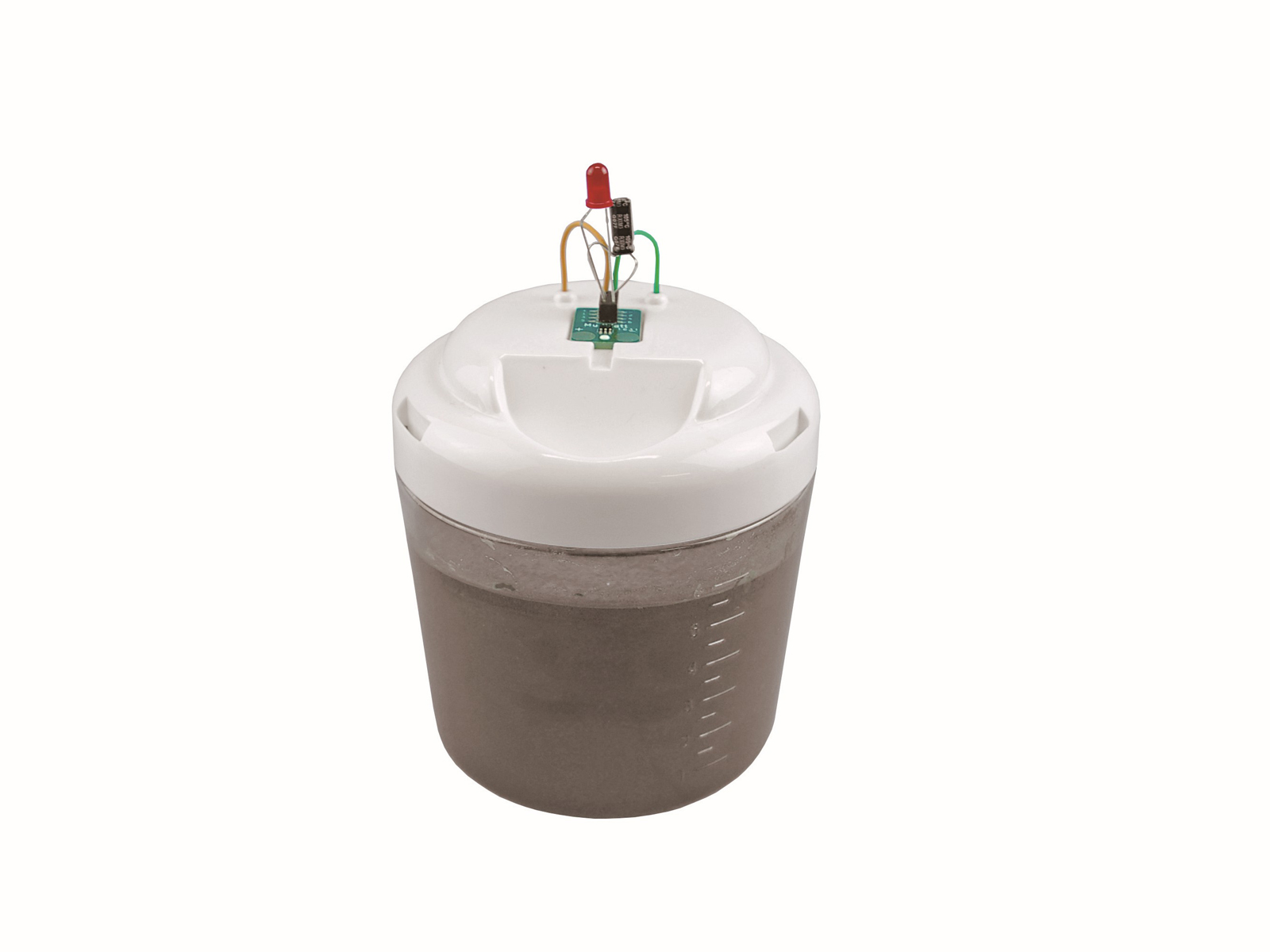 マッドワットは土の中の微生物の自然代謝を利用した微生物燃料電池。発生した電気エネルギーを付属のLED(LEDモード)やデジタル時計(時計モード)で確認できます。採取した土壌やその後の環境によって微生物による発電がどのように変わるかなど、探究学習に最適なセットです。