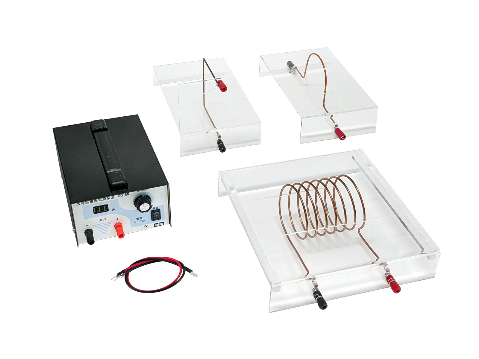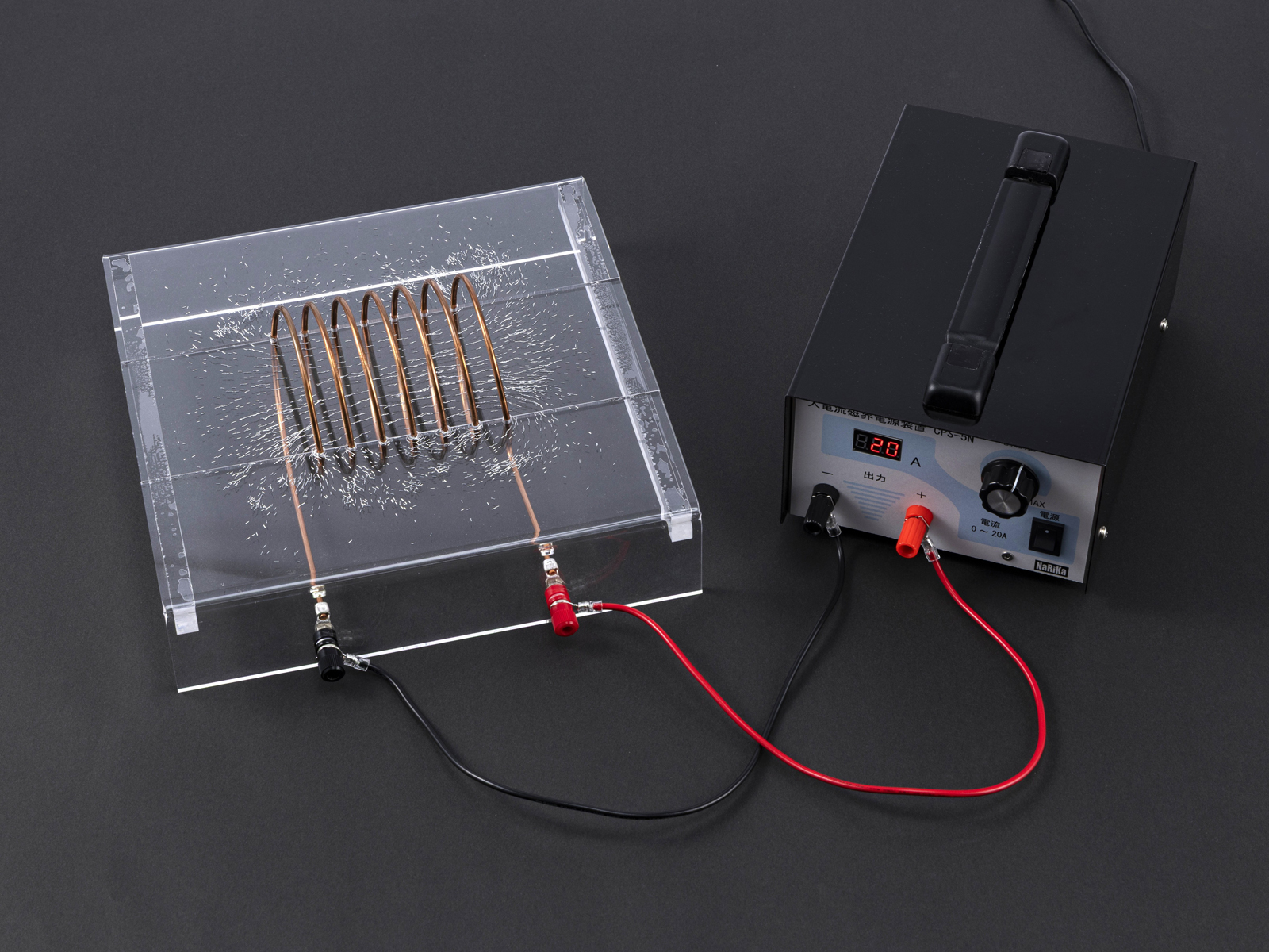 大電流磁界電源装置を用いて、電流による磁界を方位磁針やマグチップを併用して観察することができます。