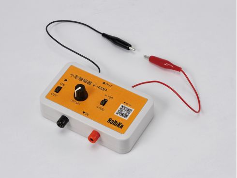 微小な電気信号を増幅する小型の実験用アンプです。検流計や各種センサと組合わせて使用することで、通常の検流計では測定できなかった地磁気による発電の実験などの微小な電流の測定が可能になります。