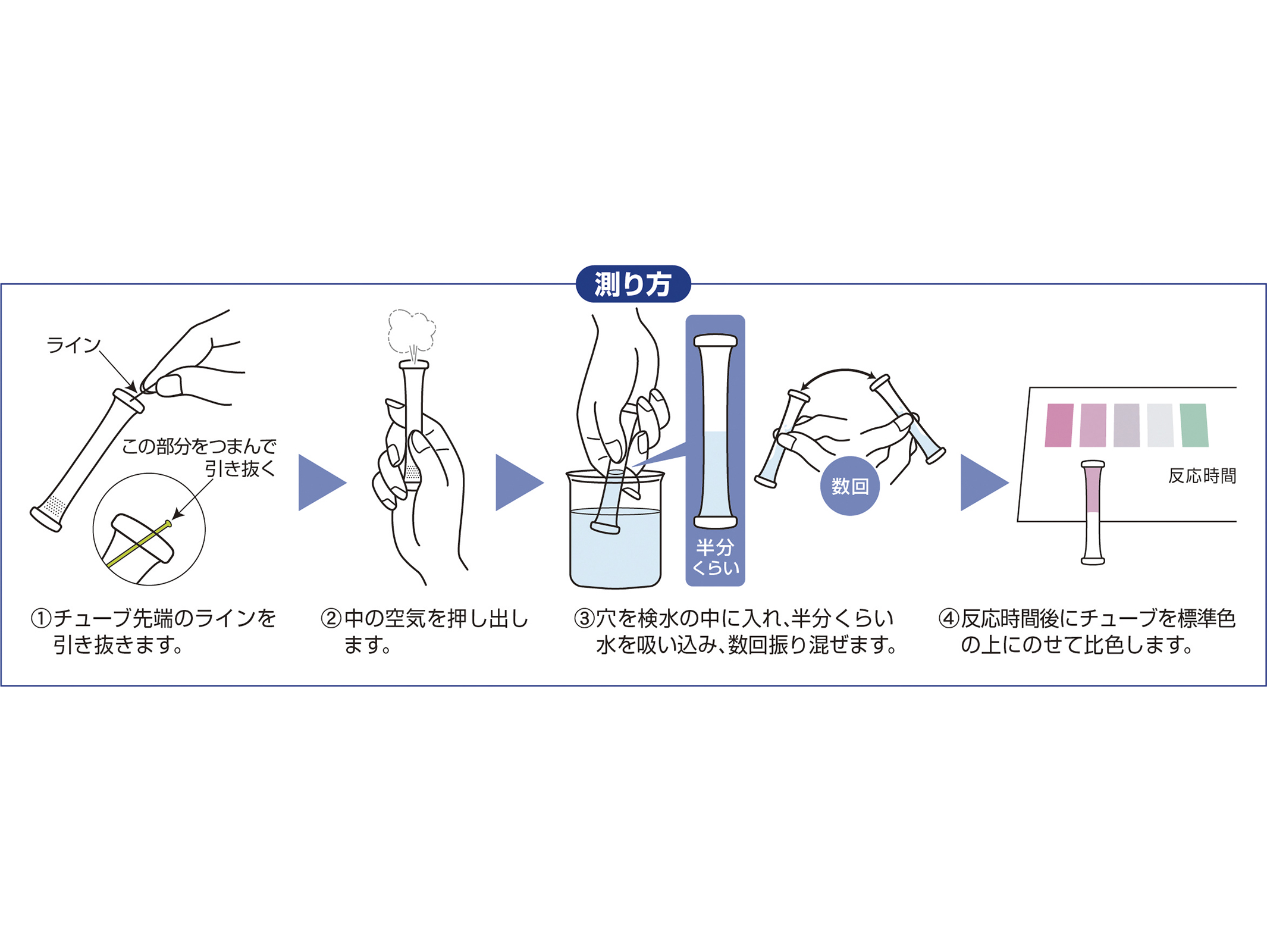 検水に含まれる測定項目の濃度やpHなどを、簡単な手順ですぐに測定できます。標準色付き。