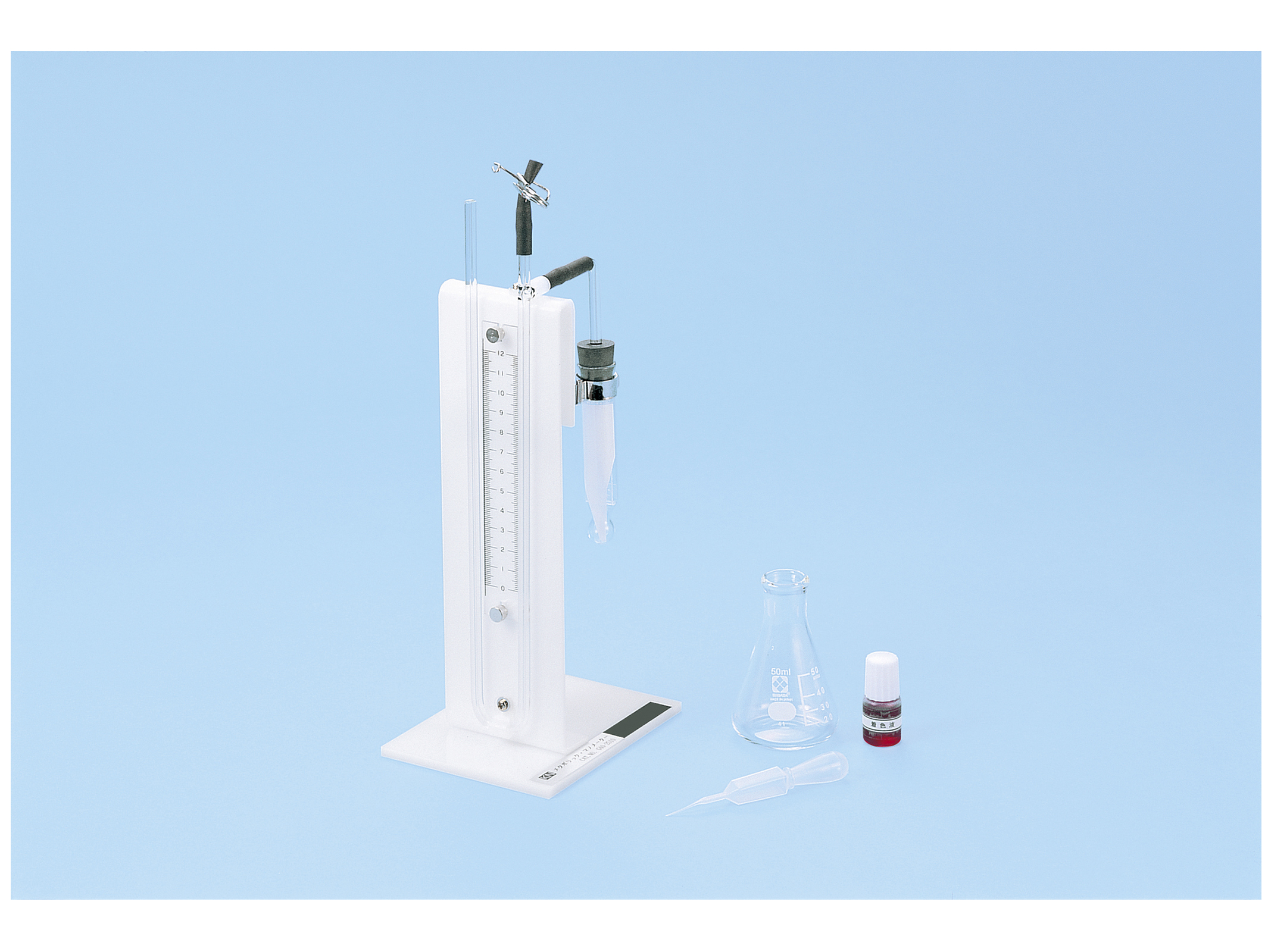 生徒のグループ実験で、呼吸、発酵、光合成などの定量実験を行うのに最適です。水生生物、陸生生物の実験操作も簡単で、少量の材料でしかも短時間で行えます。また、目盛板のスライドによって0位置補正が簡単にできます。
