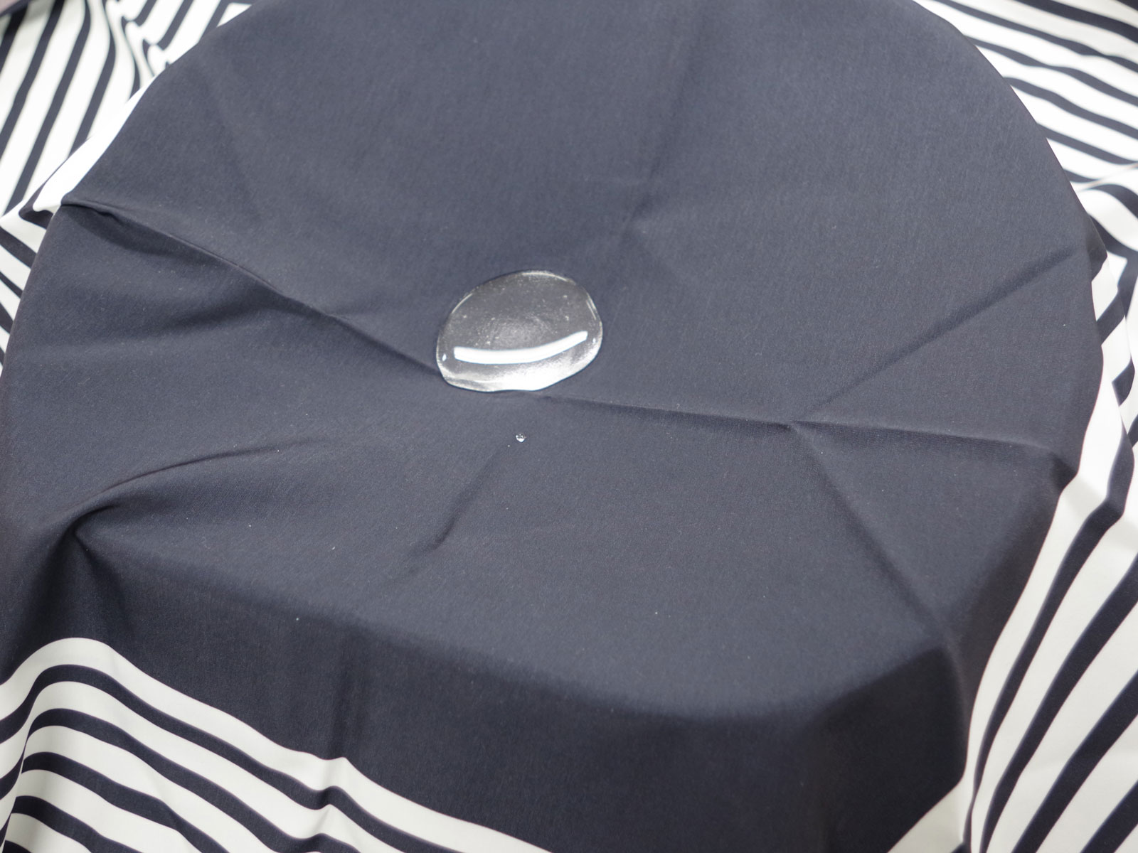 超はっ水加工を施したふろしきです。ふろしきの中に水を入れて持ち運ぶことができ、その間ふろしきは濡れたり、水がこぼれることはありません。水の入ったふろしきをギュッと絞るように押すと水が出てきますが、不思議なことに、ふろしきの水が出た部分を触っても濡れていません。
