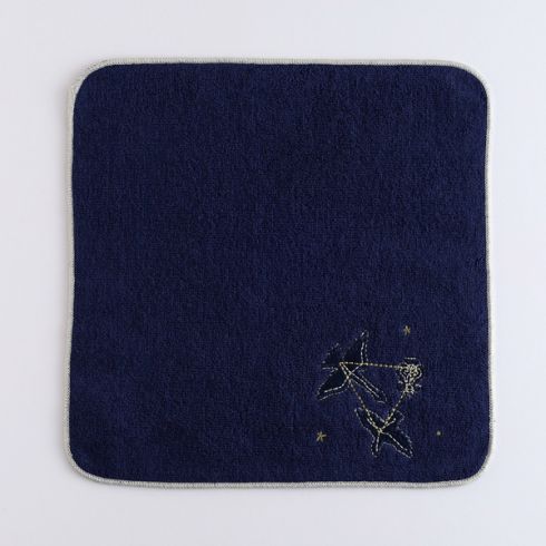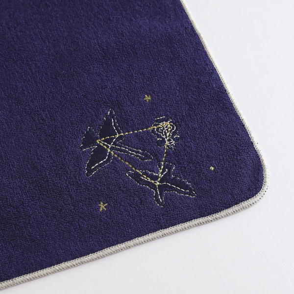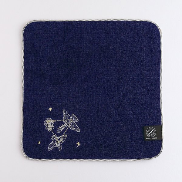 両面パイルで吸水力が高い!アップリケと刺繍をあしらったアカデミックなタオルハンカチです。