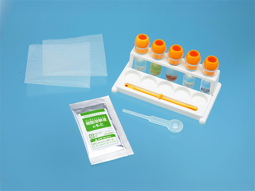 「おもしろ自由研究『基本セット』」は小中学校の基本実験で使われる、ガラス器具などをセットにしました。収納に便利なケース入り。